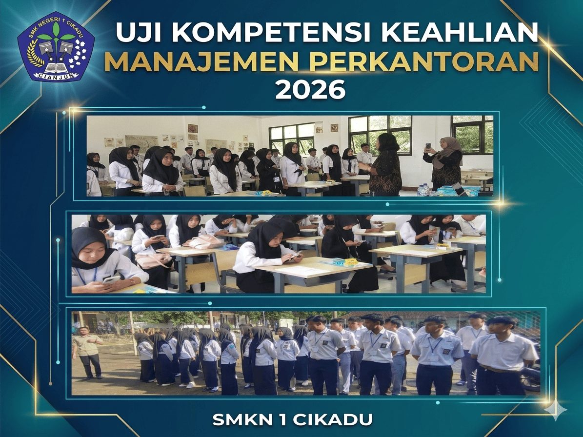 SMKN 1 Cikadu kembali melaksanakan Uji Kompetensi Keahlian (UKK) bagi siswa kelas XII, khususnya pada Bidang Keahlian Manajemen Perkantoran. Kegiatan ini berlangsung dengan tertib, lancar, dan penuh kedisiplinan, mencerminkan kesiapan peserta didik dalam menghadapi tantangan dunia kerja.